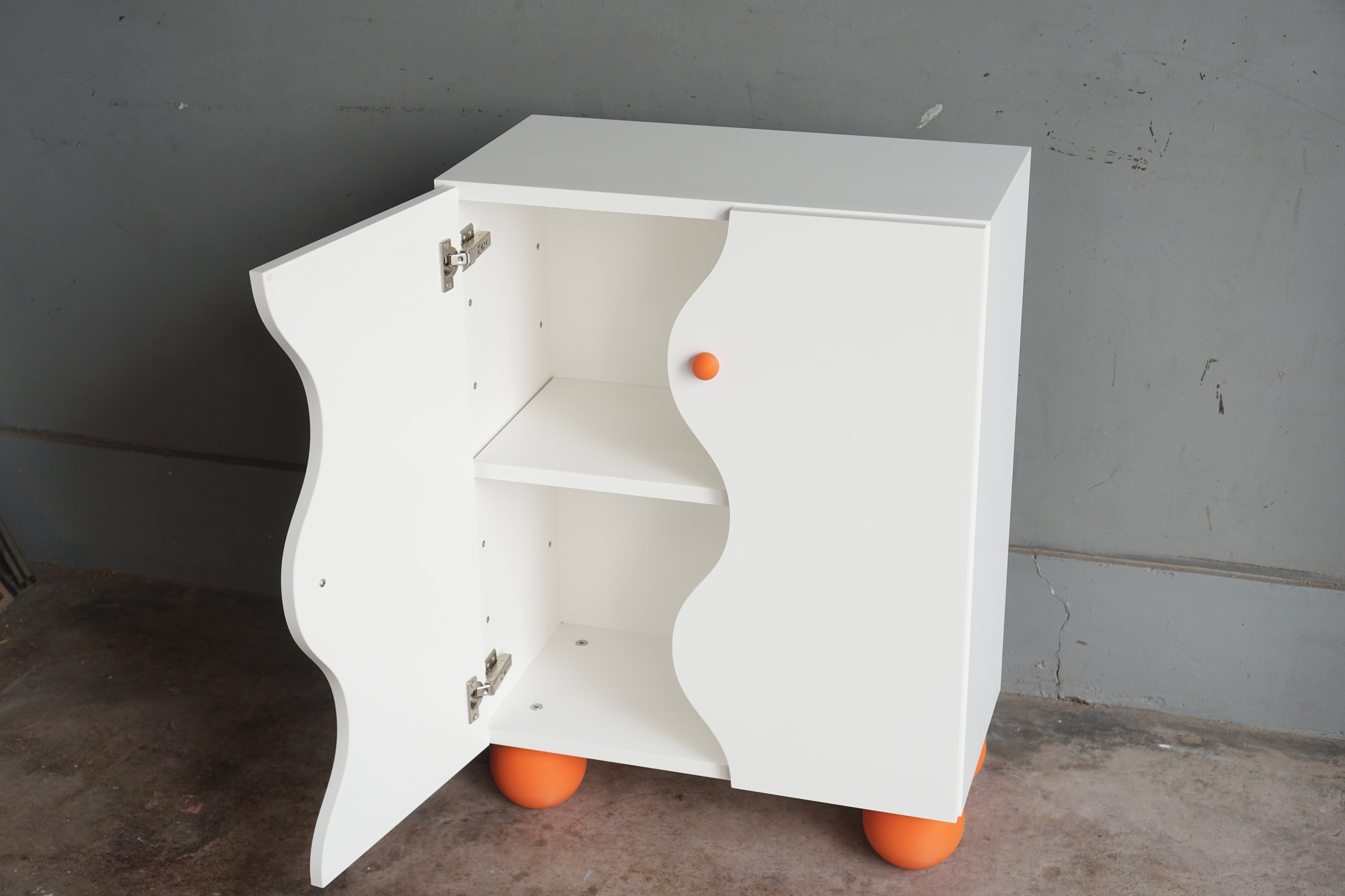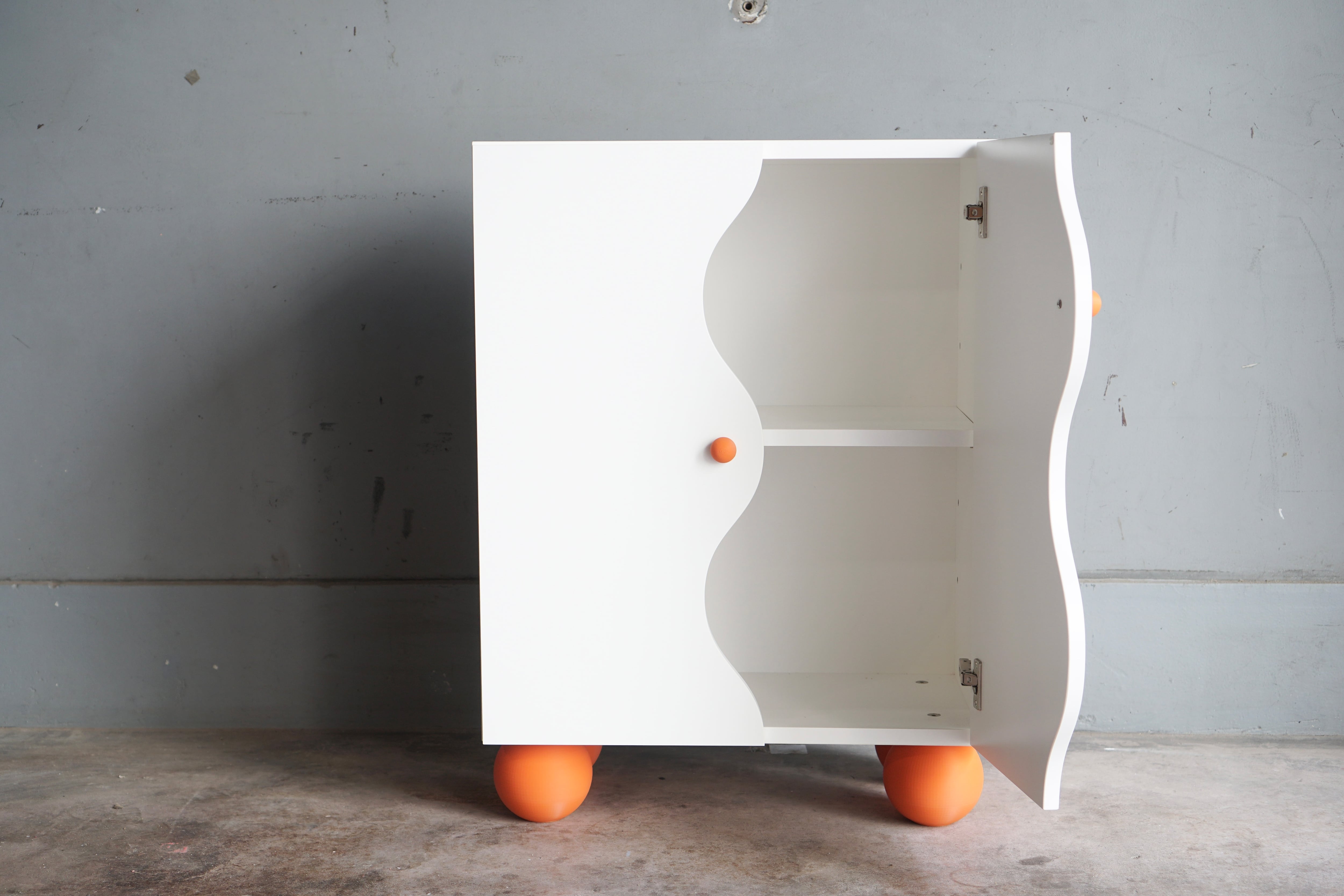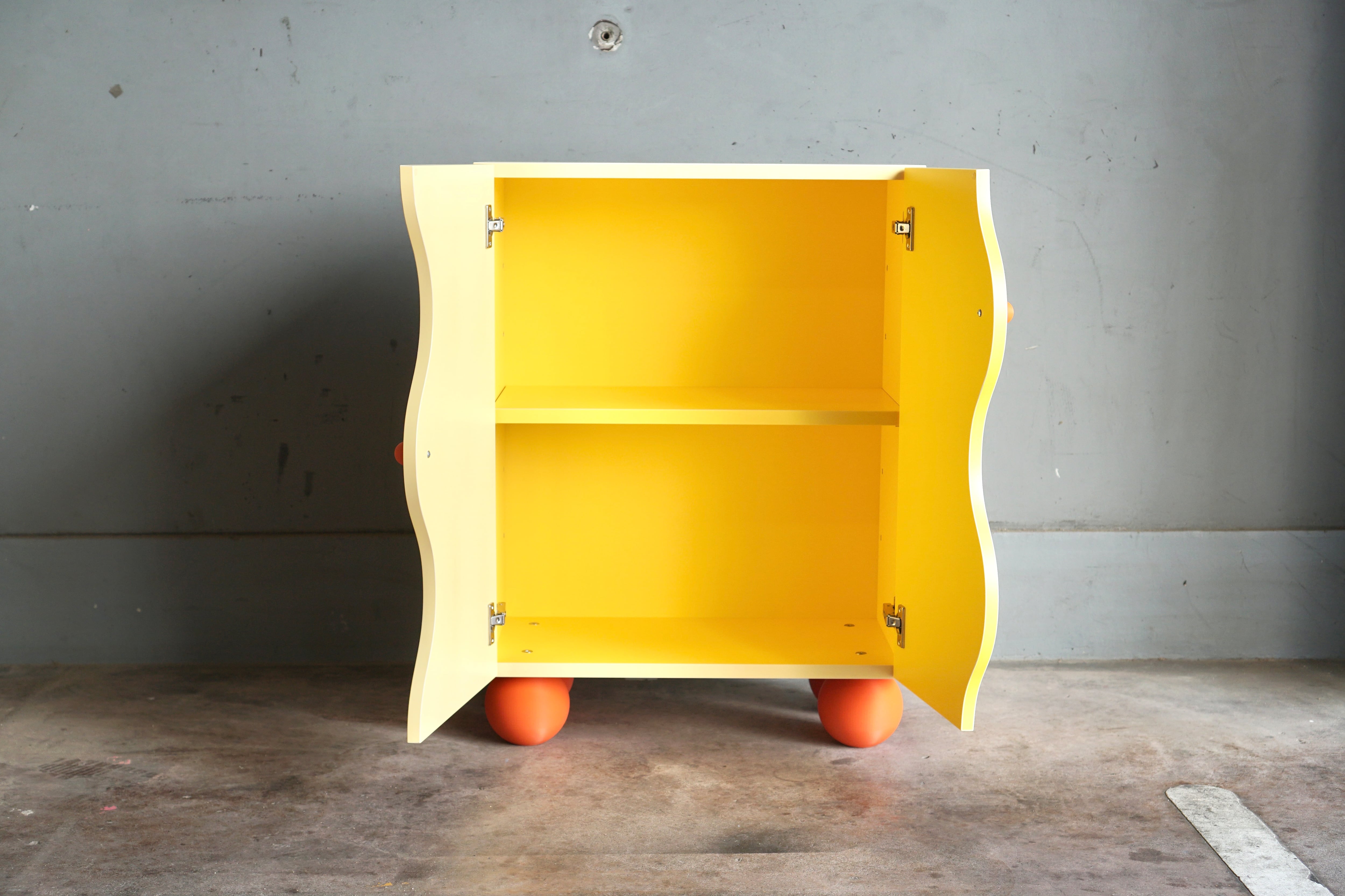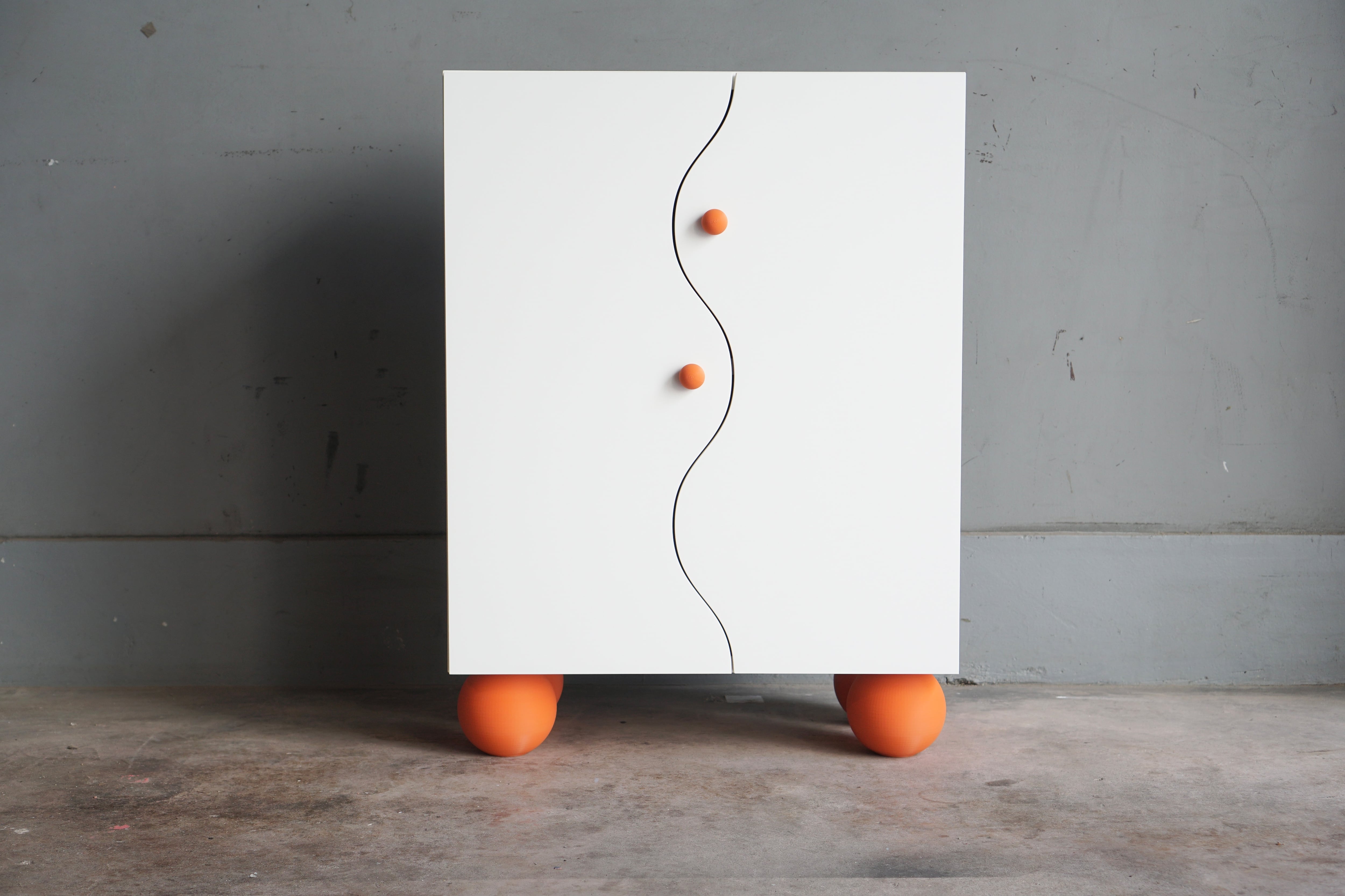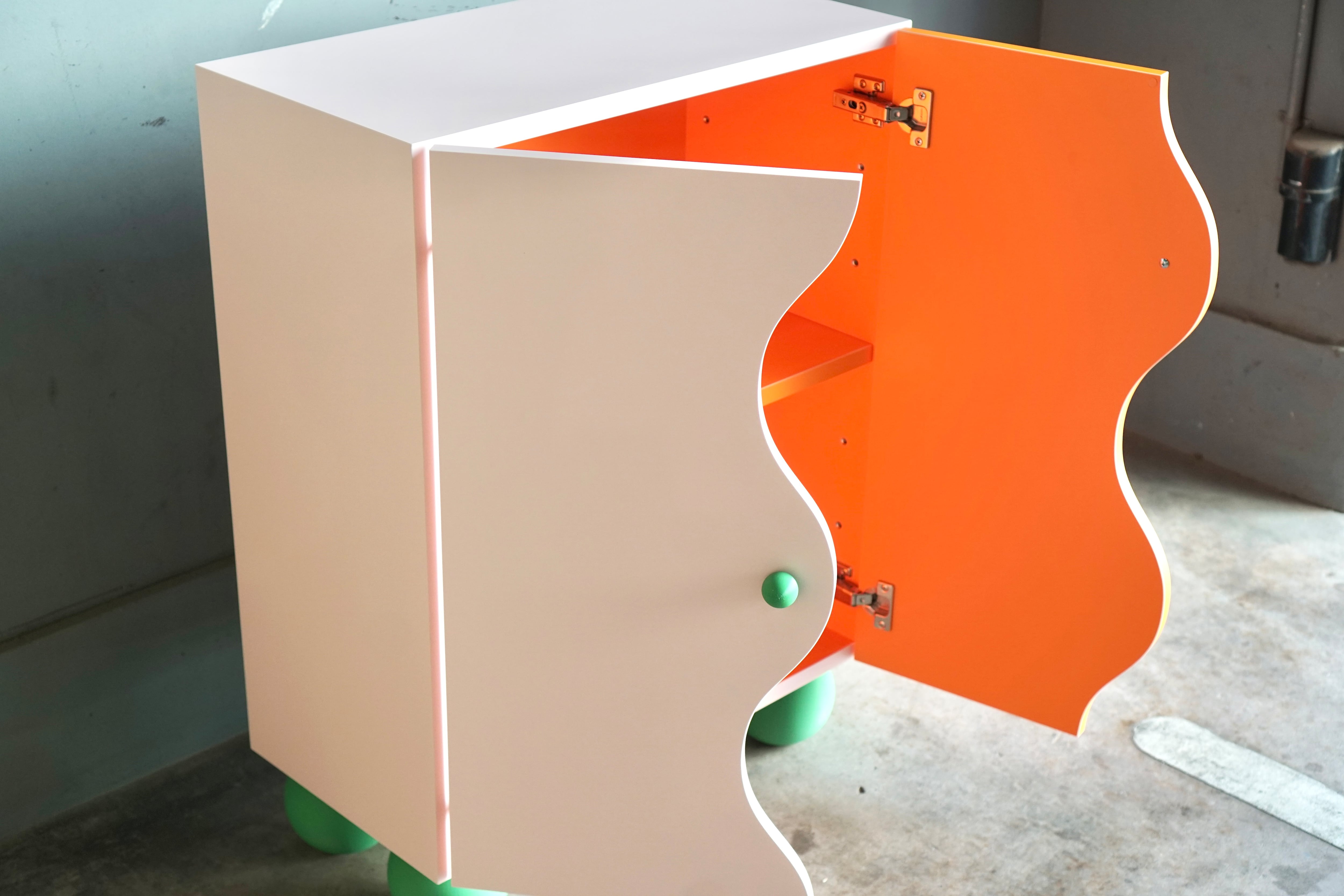 木材と3Dプリントを組み合わせた、異素材のコラボレーションが珍しくも楽しいキャビネットです。