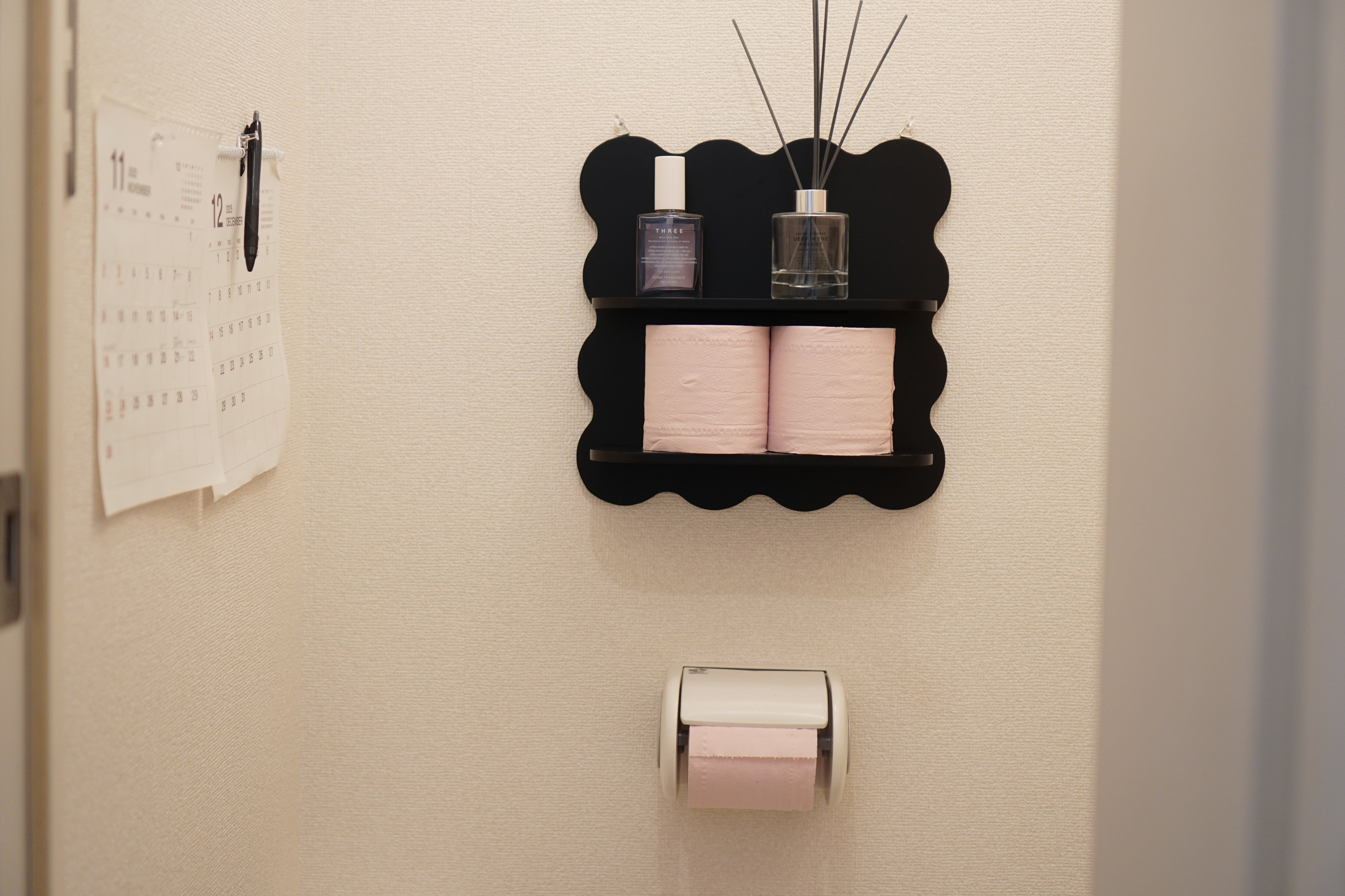 トイレットペーパーが4ロール収納できるウォールシェルフです。