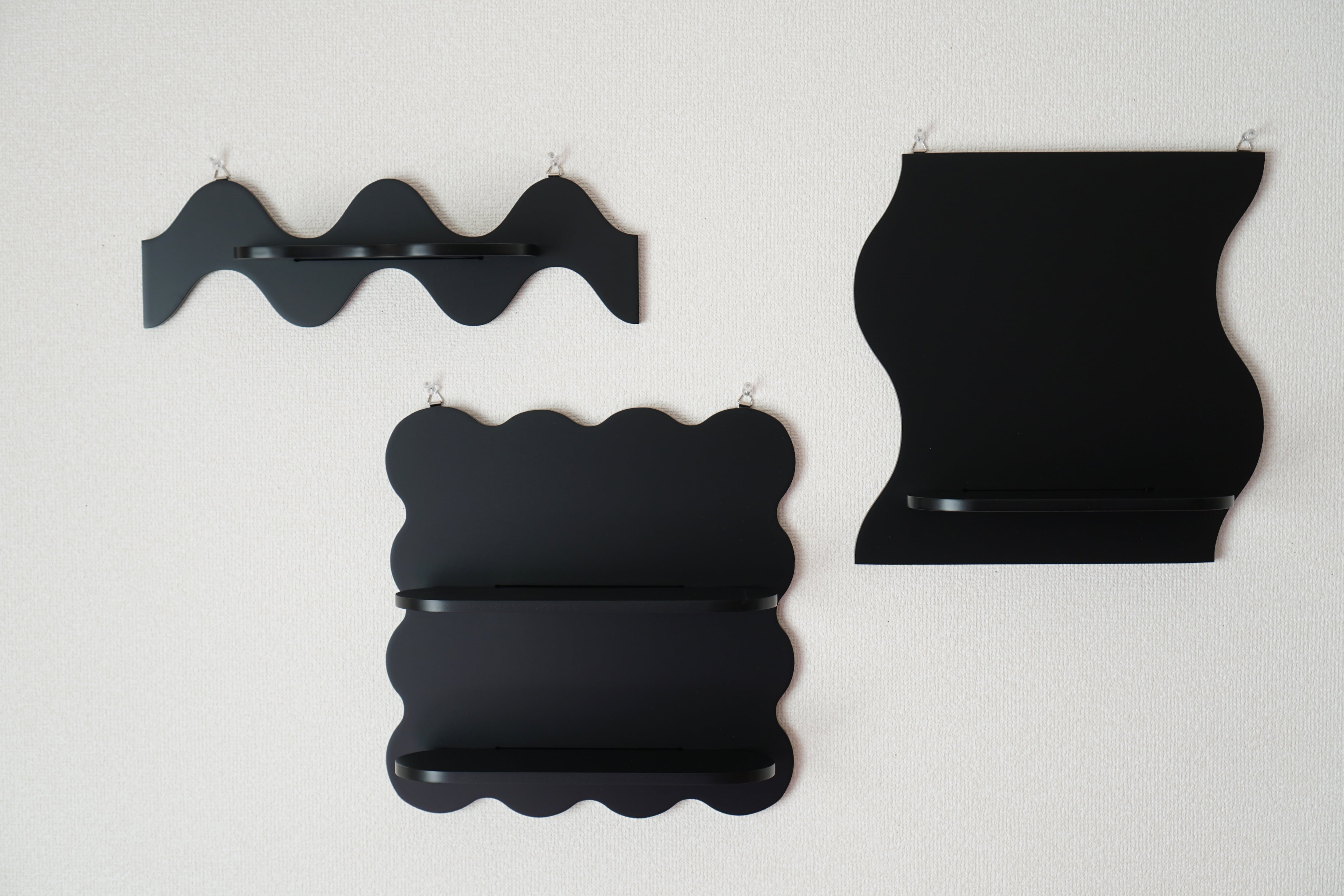 COMOCO WALL "wave"は、画鋲を使って簡単に壁に取り付けられる波型のウォールシェルフです。