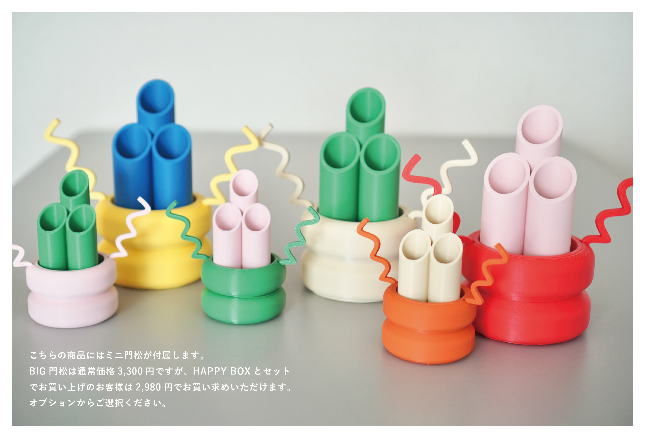 こちらの商品にはミニ門松が付属しますが、HAPPY BOXとセットでお買い上げのお客様は¥2,980でBIG門松(サイズ:幅約8cm×高さ約15cm)をご購入いただけます。(通常¥3,300)