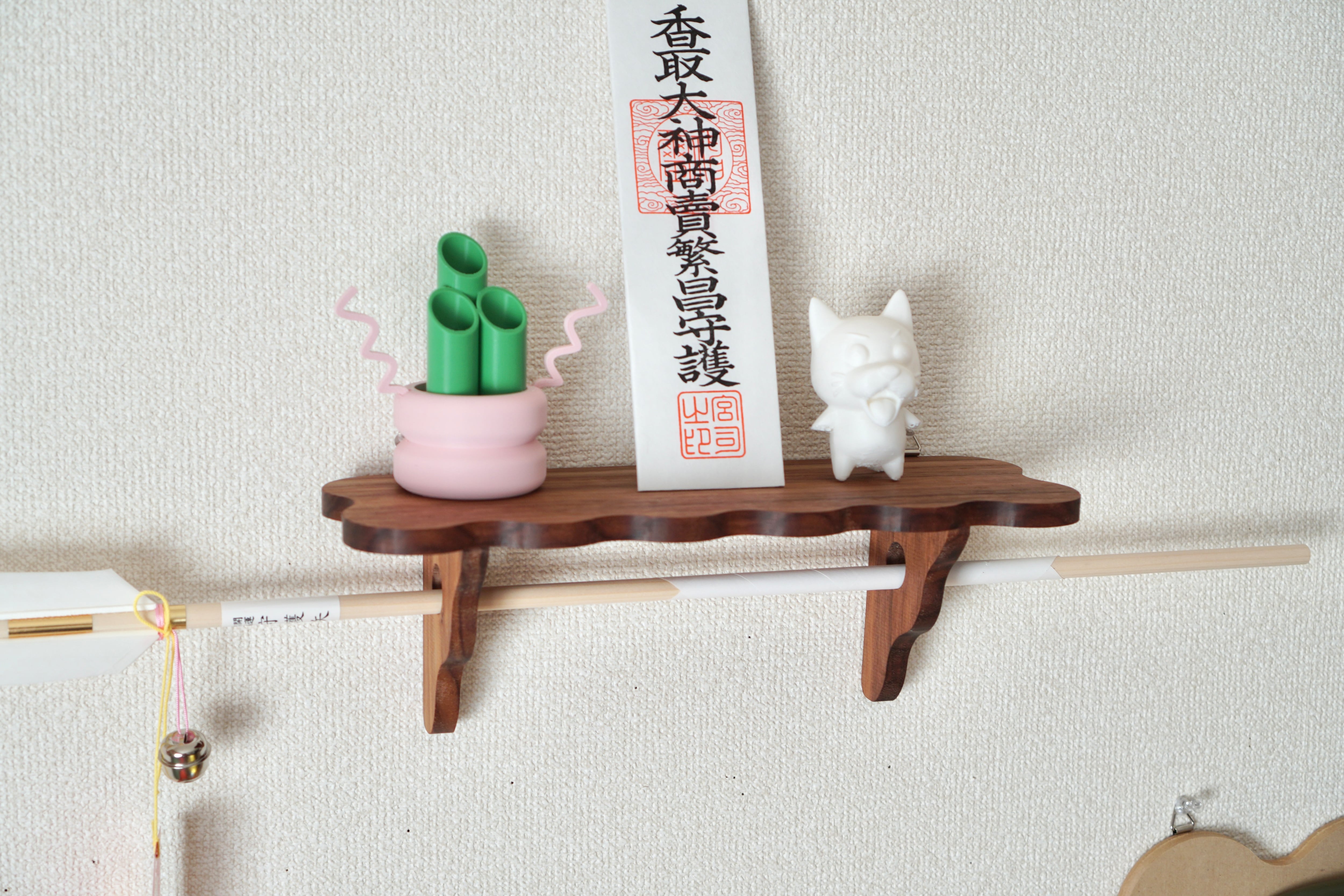 破魔矢とお札が置けるシェルフです。