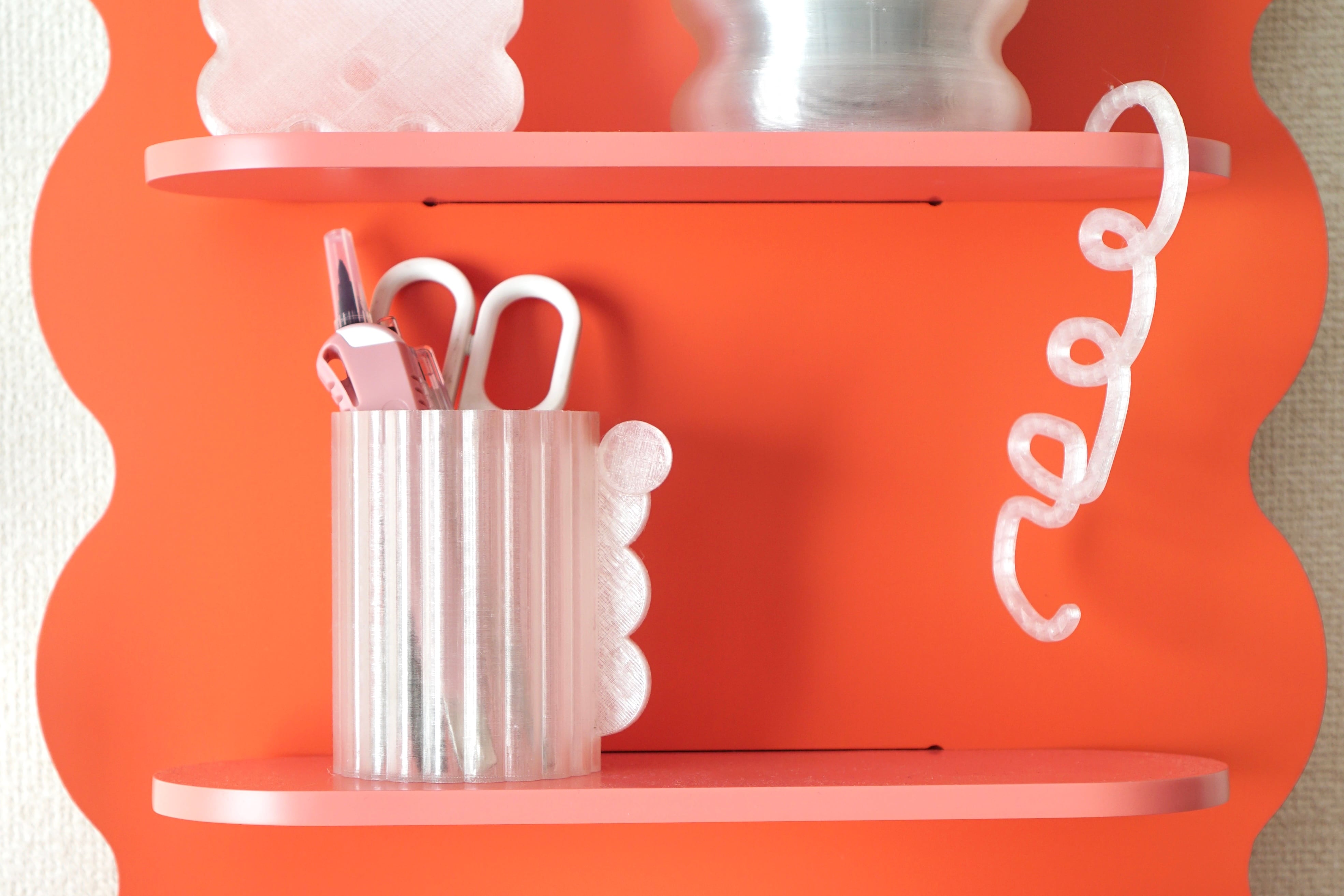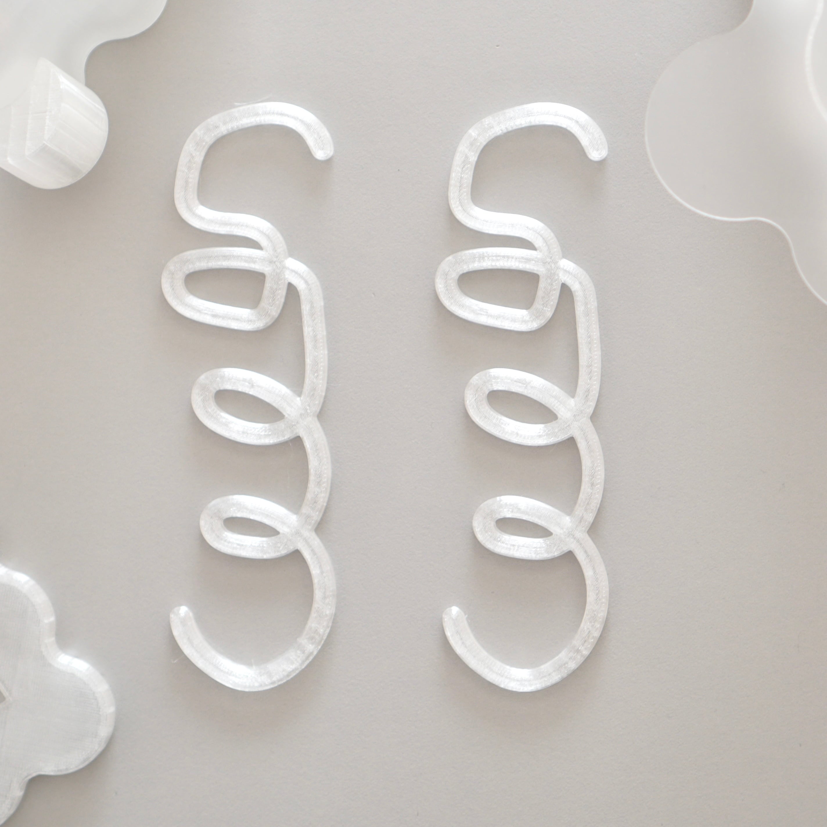 3Dプリンターで製作した手書き風のぐるぐるS字フック2個セットです。