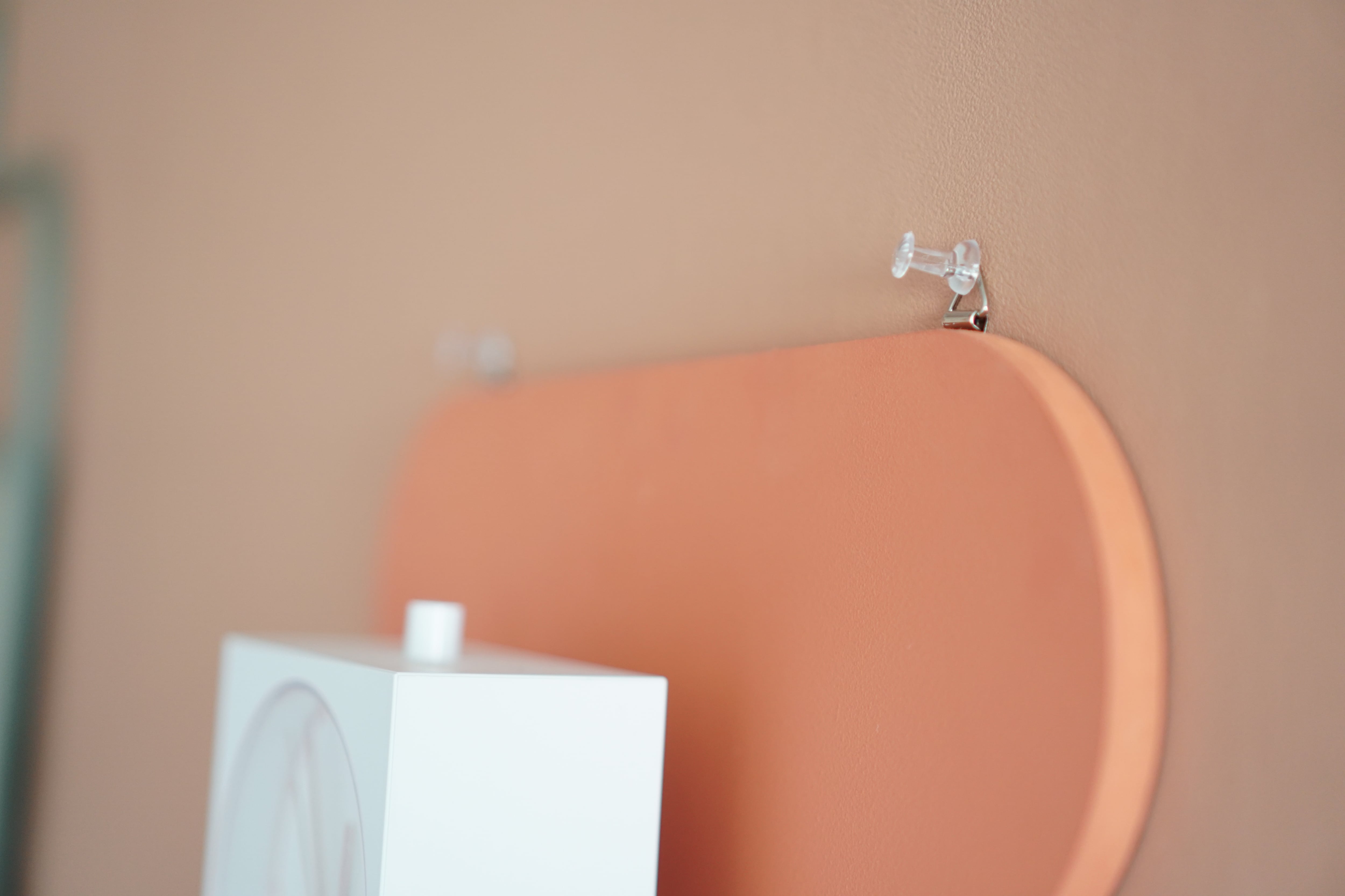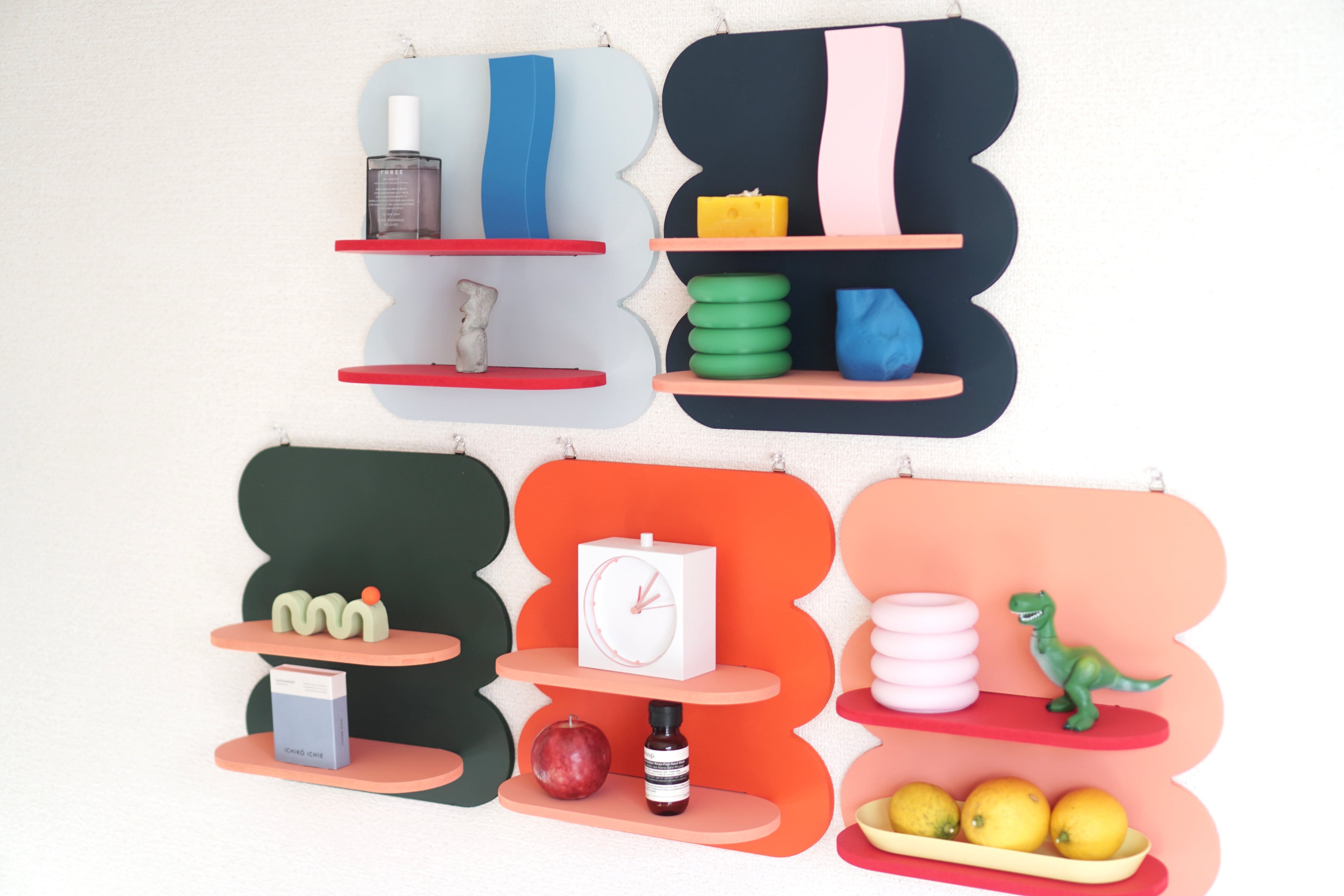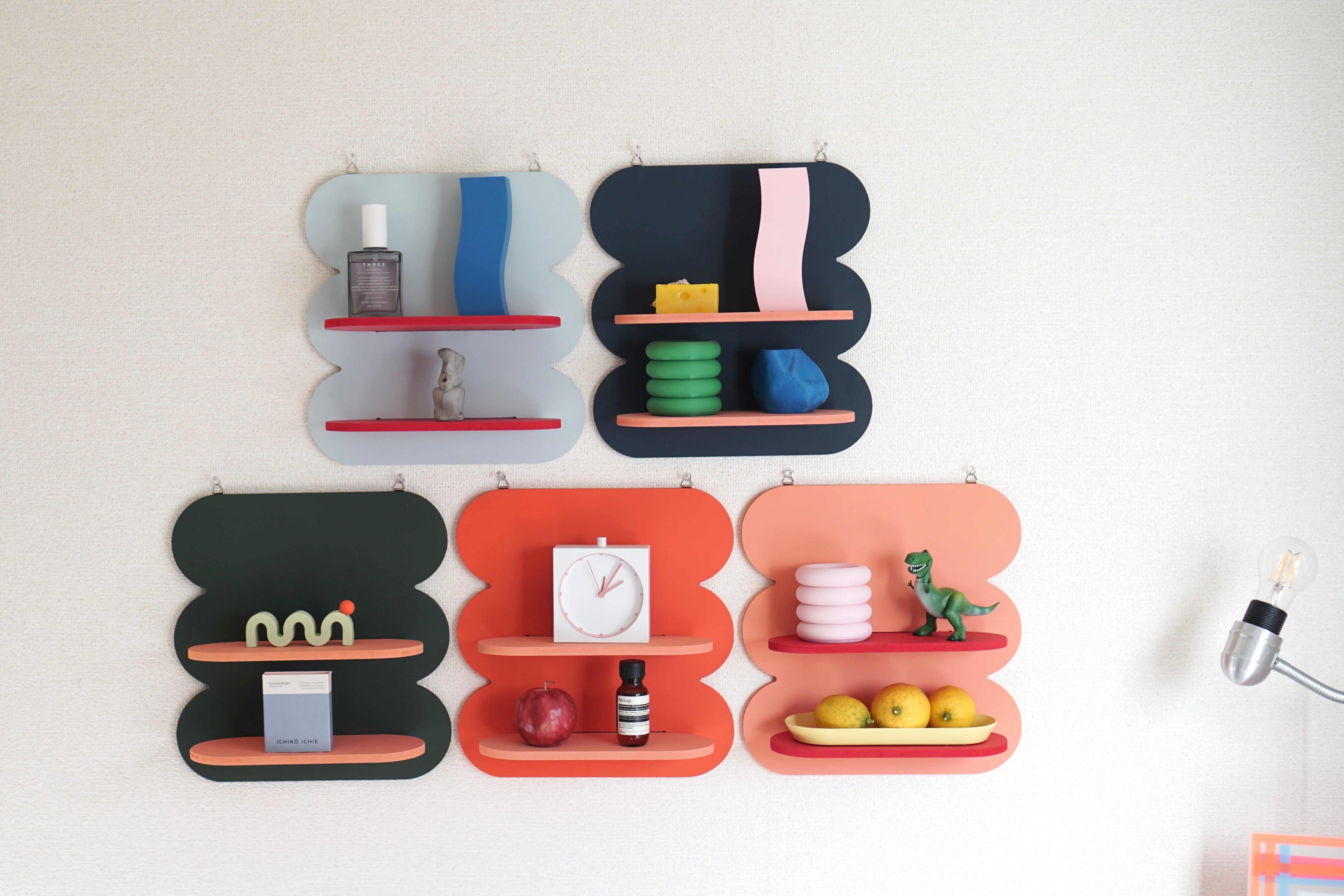 COMOCO WALL "mocomoco"は、画鋲を使って簡単に壁に取り付けられるウォールシェルフです。