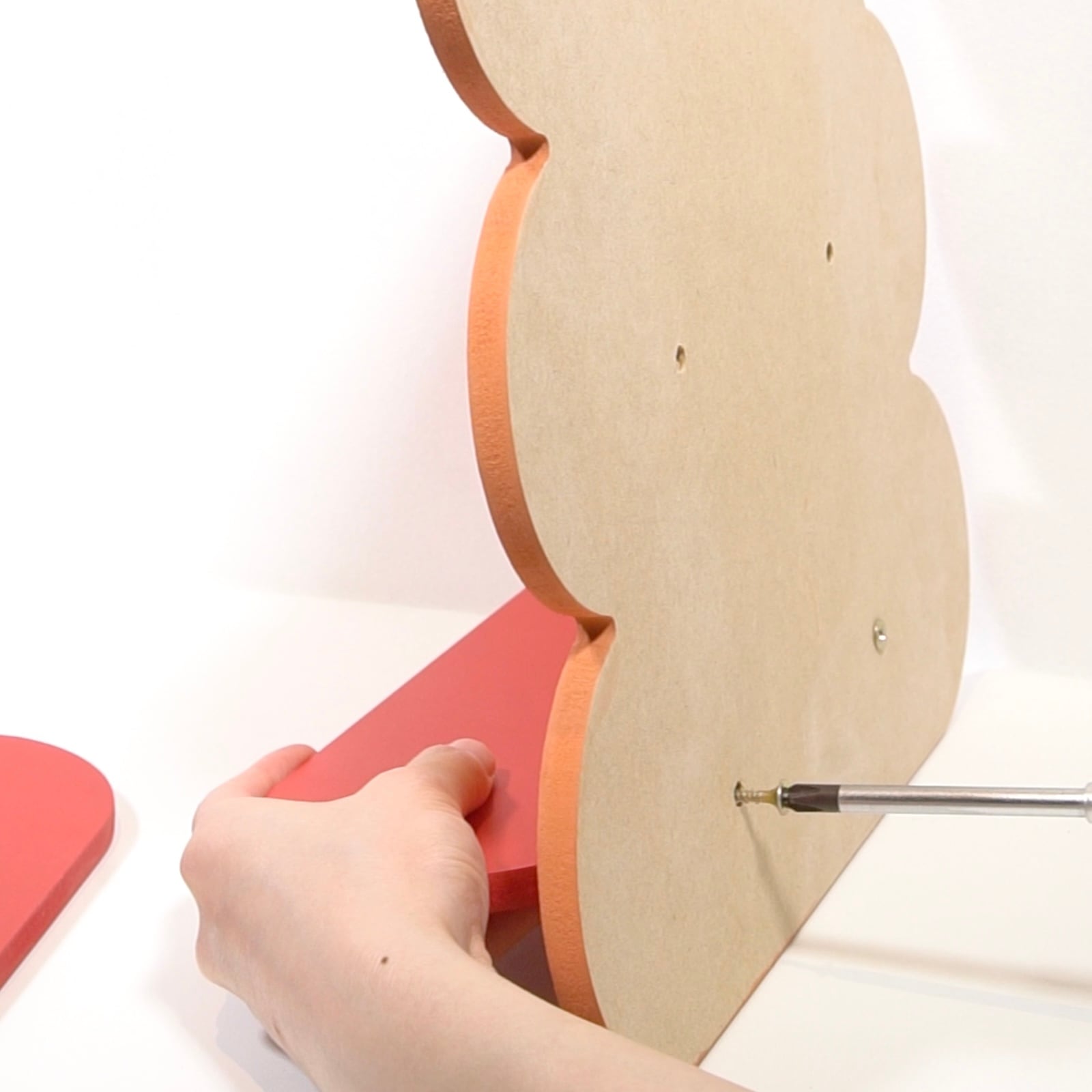 棚板からビスがはみ出ないよう、真っ直ぐゆっくりと締め込んでください。