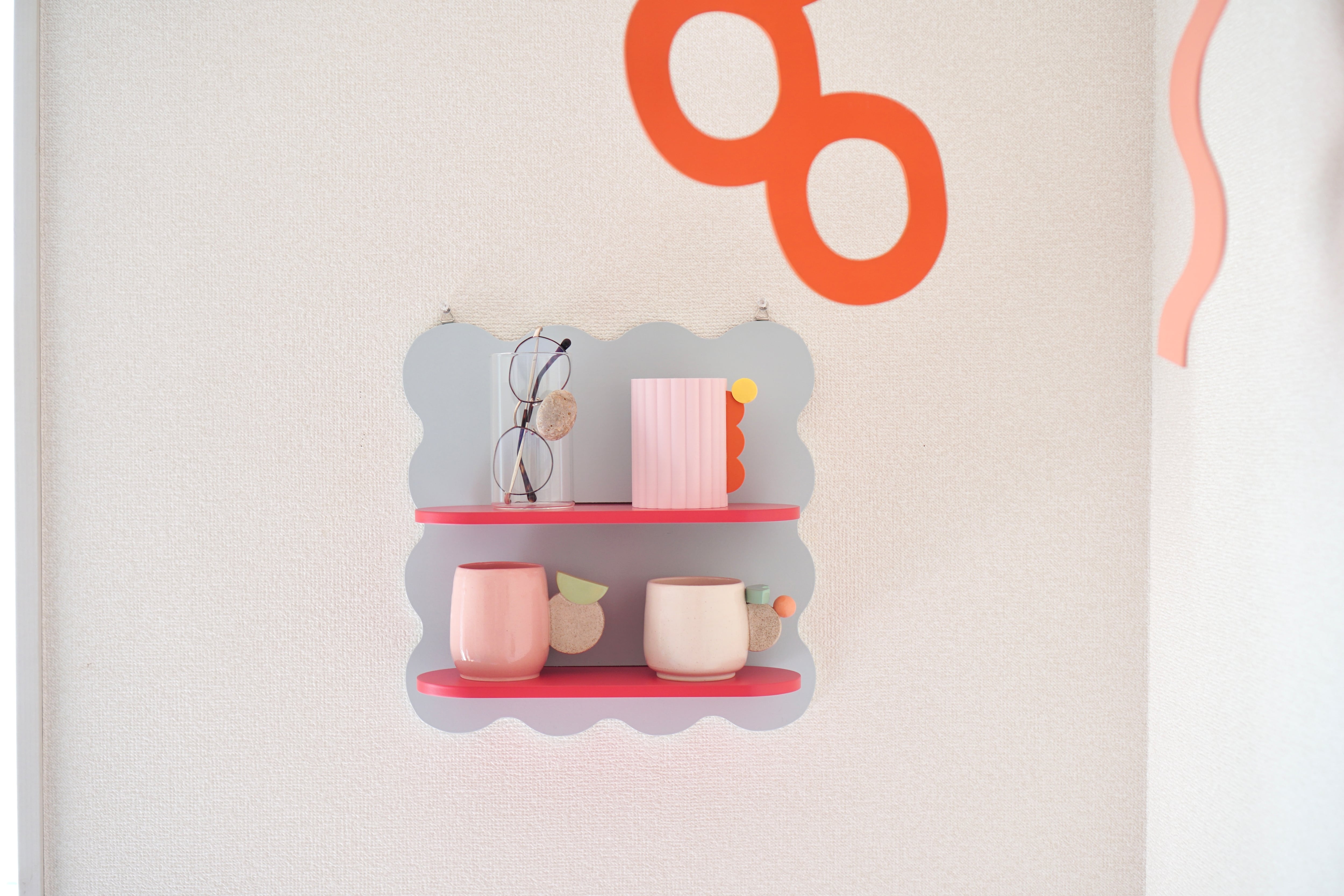 賃貸でも取り付け可能なカラフルなもくもく形のウォールシェルフです。